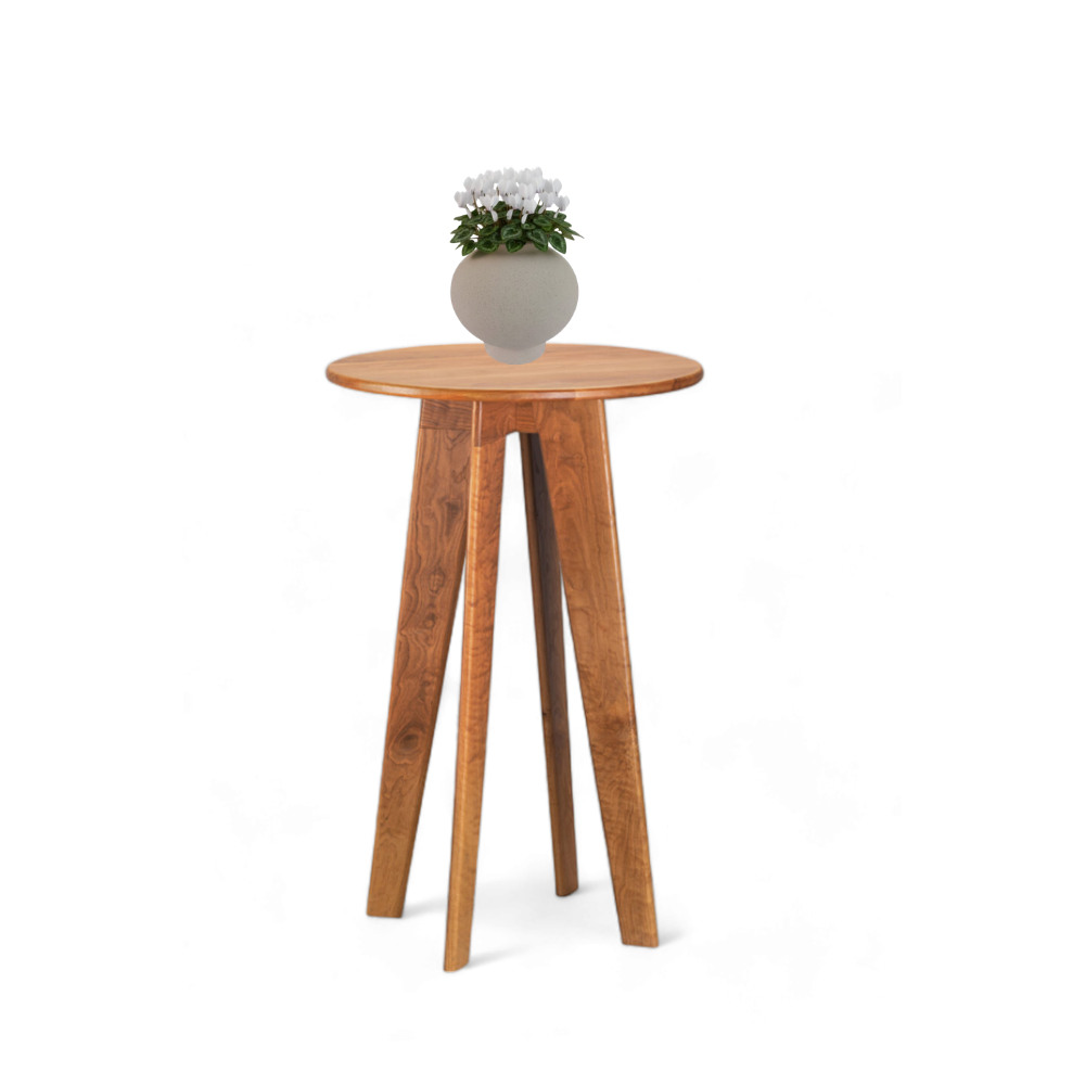 שולחן קונו עץ גובה בר עליו אגרטל דזרט כדור גדול עם רקפת